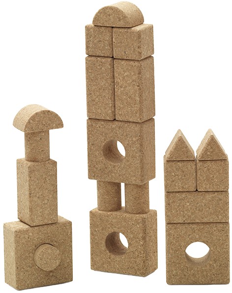 משחק בלוקים בצורות שונות עשוי משעם - אקולוגי, קל משקל ובטיחותי! תנו לילדים אפשרות לפתח את הדמיון ולפתח כישורי מוטוריקה גסה על ידי בניית מגדלים, גשרים ועוד. הבלוקים לא מתחברים אחד לשני ב"קליק", אלא מצריכים הנחה עדינה של הבלוקים אחד על השני. השימוש בבלוקים הקלאסיים מפתח יכולת לשמור על שיווי משקל ומגע עדין יותר בשביל לבנות ארמון פאר.